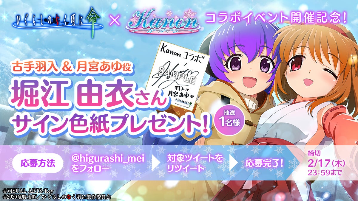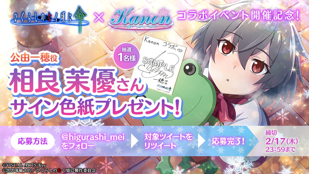 スマートフォンゲーム『ひぐらしのなく頃に 命』にて『Kanon』とのコラボイベントを開催!コラボガチャは1日1回無料!!