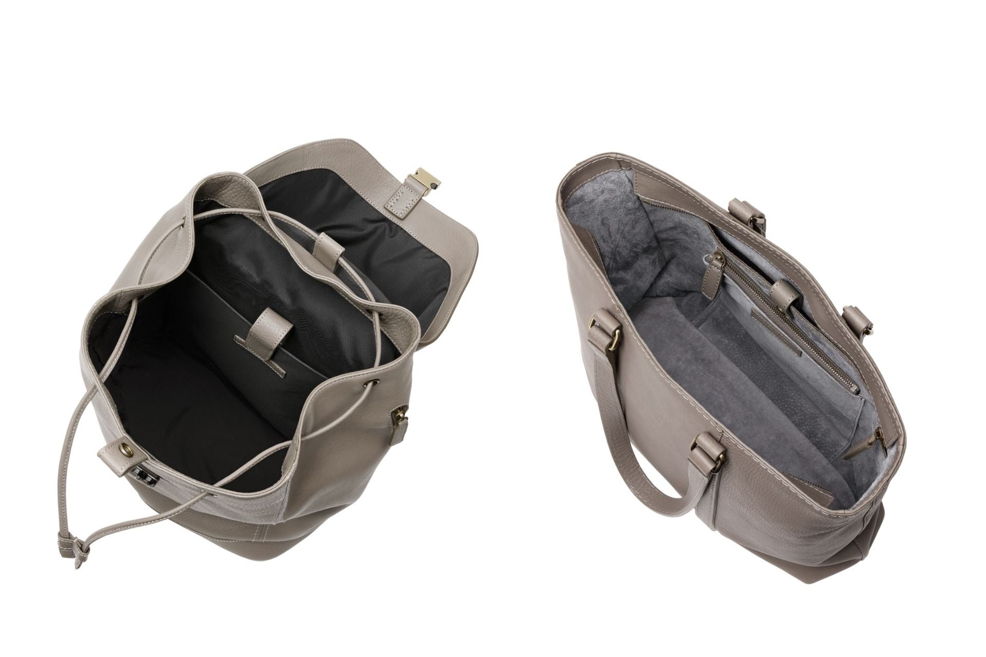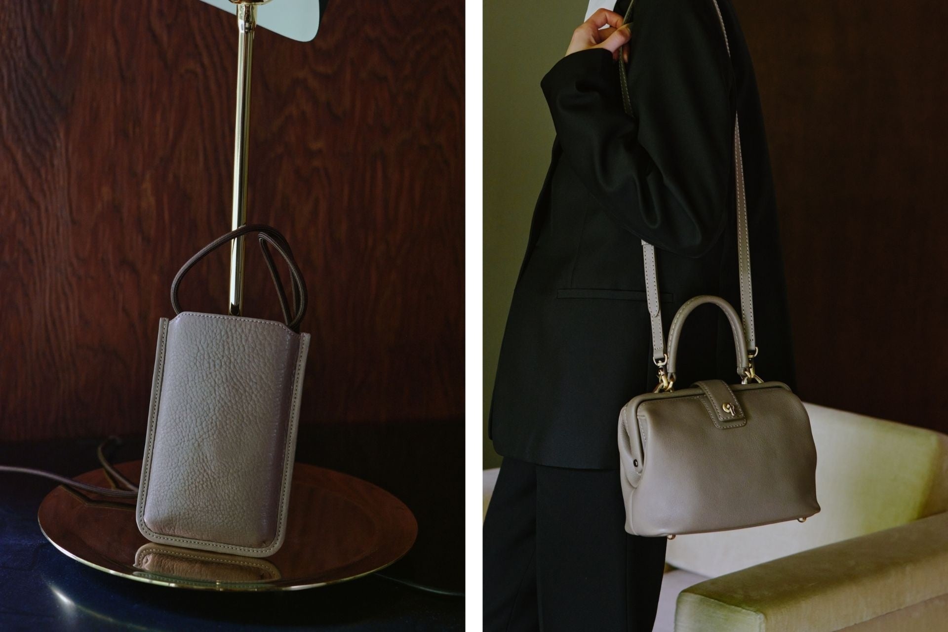 内装と背当てのカラーは、素材に合わせてそれぞれブラックとグレー、ブラックとチャコールグレーを採用。ステッチカラーはライトグレーで統一し、金具色には華やかなアンティークゴールドを用いてアクセントに。「シェードウォームグレー」と組み合わせることで、季節の特別感を楽しんでいただける配色となっています。