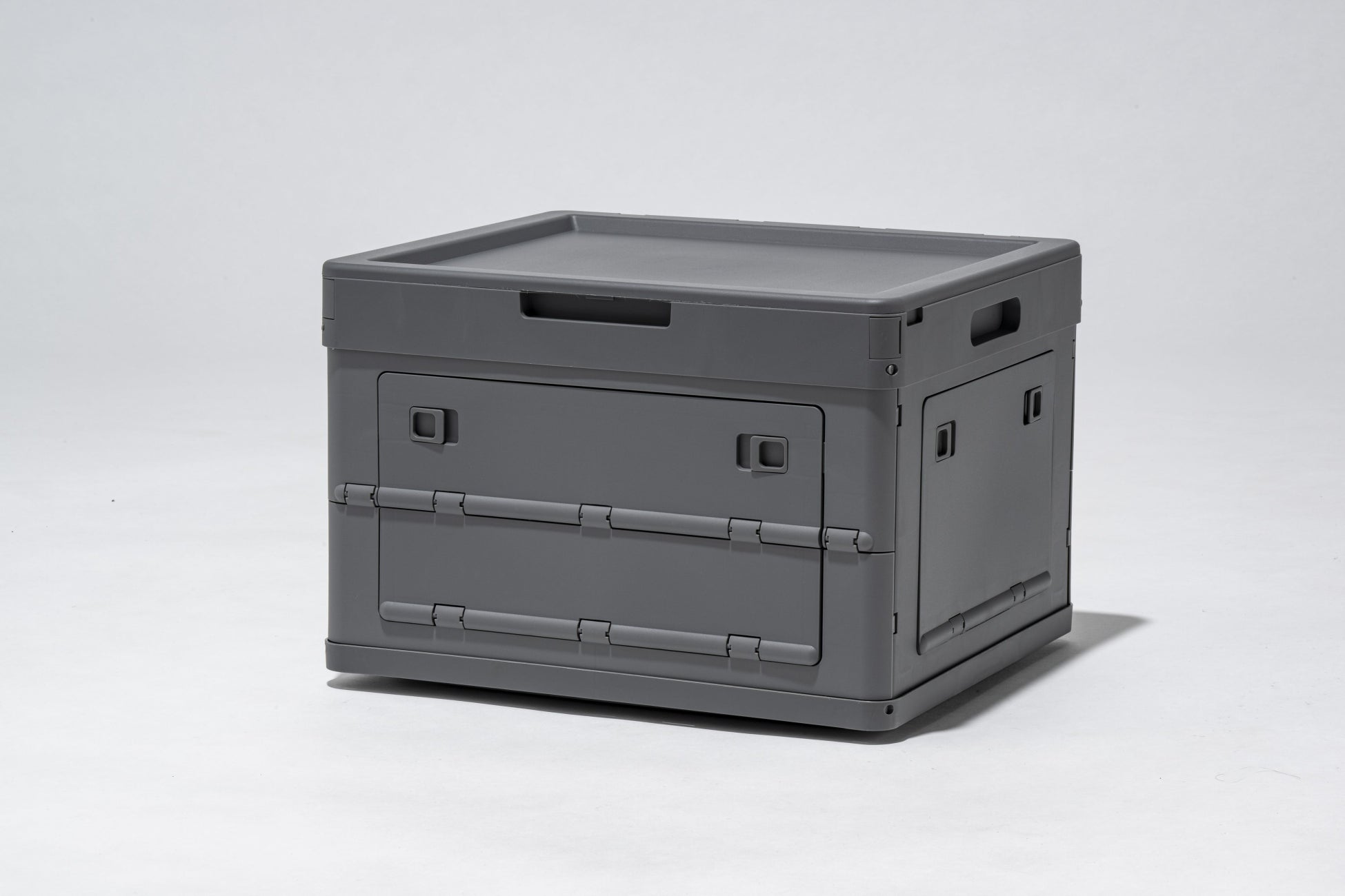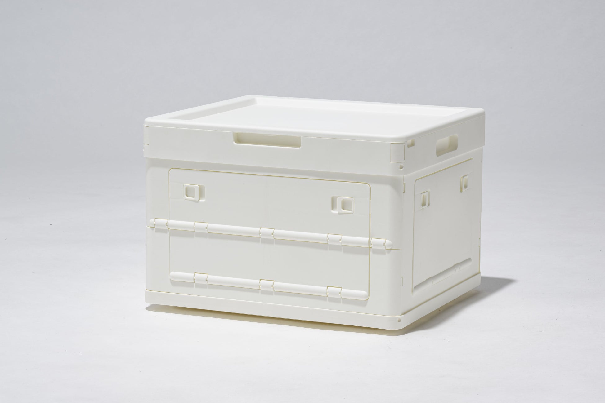居住空間に溶け込むシンプルなデザインの折りたたみ収納ボックスで、上部にキャリコを重ねて使用することができます。前後・左右・天面の5か所の開口扉から取り出しが可能。また、積み重ねたままでも側面扉から取り出せます。不要な時はコンパクトに折りたため、必要な時は簡単に組み立てて使える幅広いニーズに応えるデザインを実現しました。