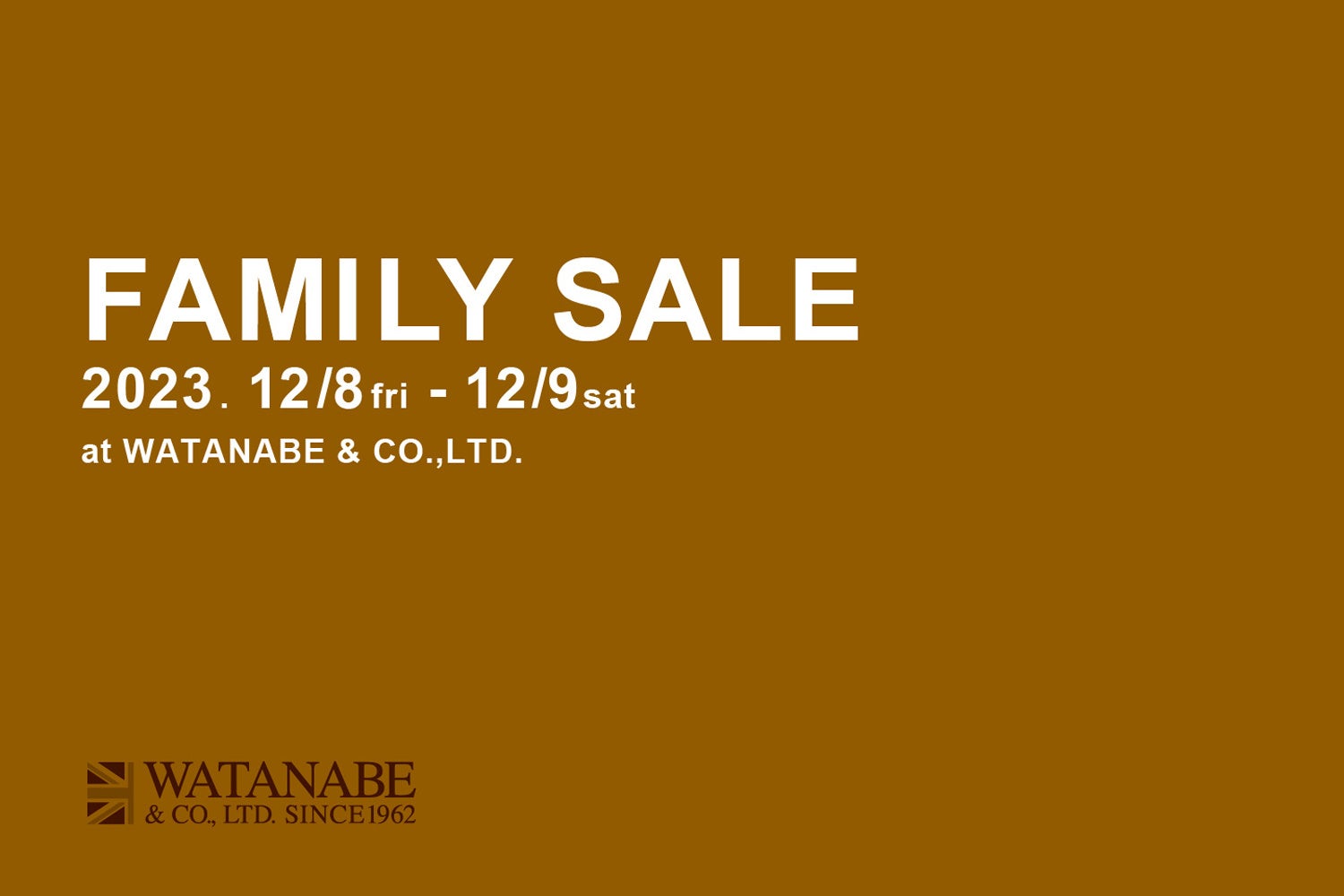 英国のクラフトマンシップから生まれた、ストーリーある英国ブランドをお届けしている渡辺産業株式会社にて、2023年12月8日(金)、9日(土)の2日間限定でファミリーセールを開催いたします。