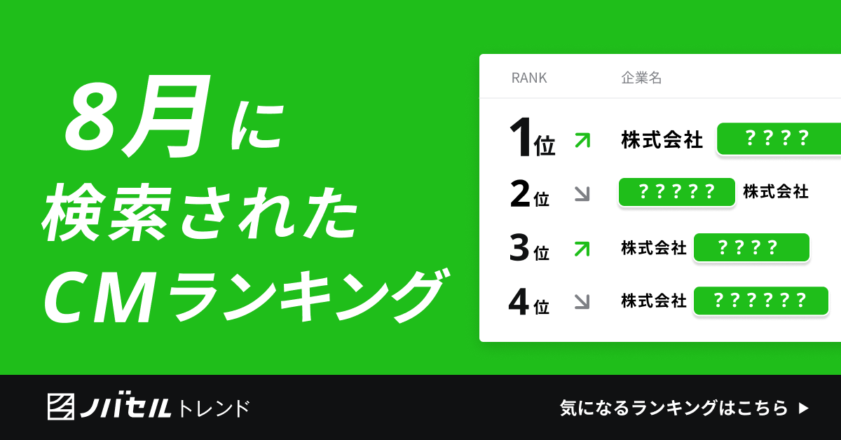 ~ノバセル発表、2024年8月 視聴者が検索したテレビCMランキング~