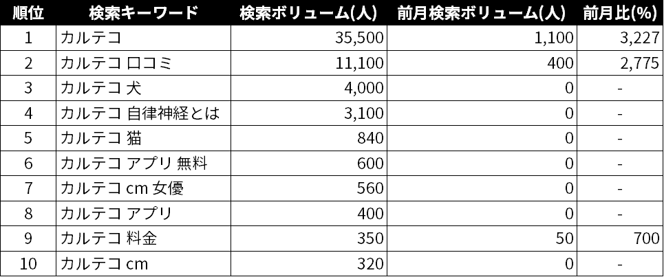 今月のランキングでは「カルテコ」について分析します。