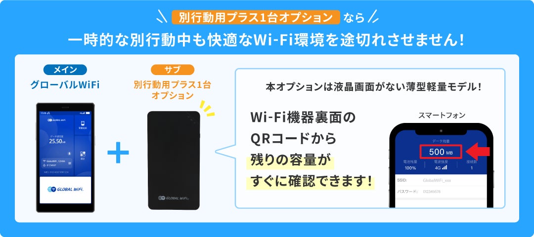 「グローバルWiFi®」、海外旅行の一時的な別行動でもWi-Fiが使える「別行動用プラス1台オプション」を提供開始。
