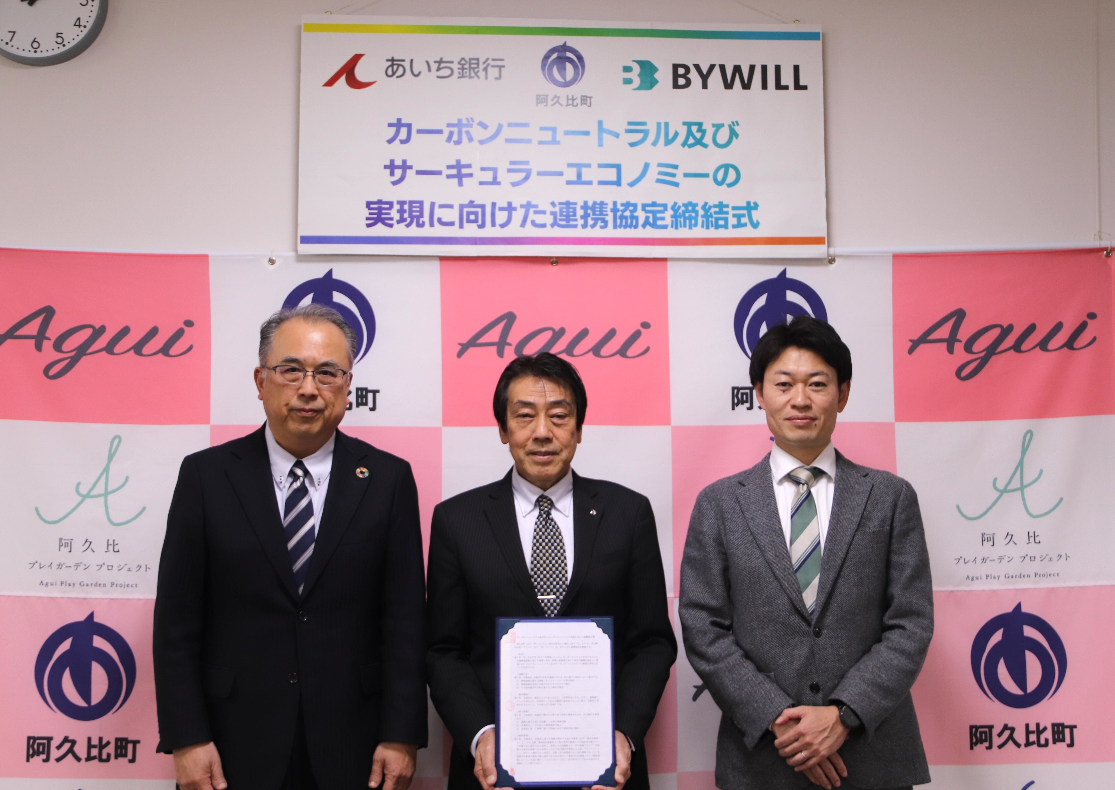 愛知県阿久比町、あいち銀行、バイウィルが「カーボンニュートラル及びサーキュラーエコノミーの 実現に向けた連携協定」を締結