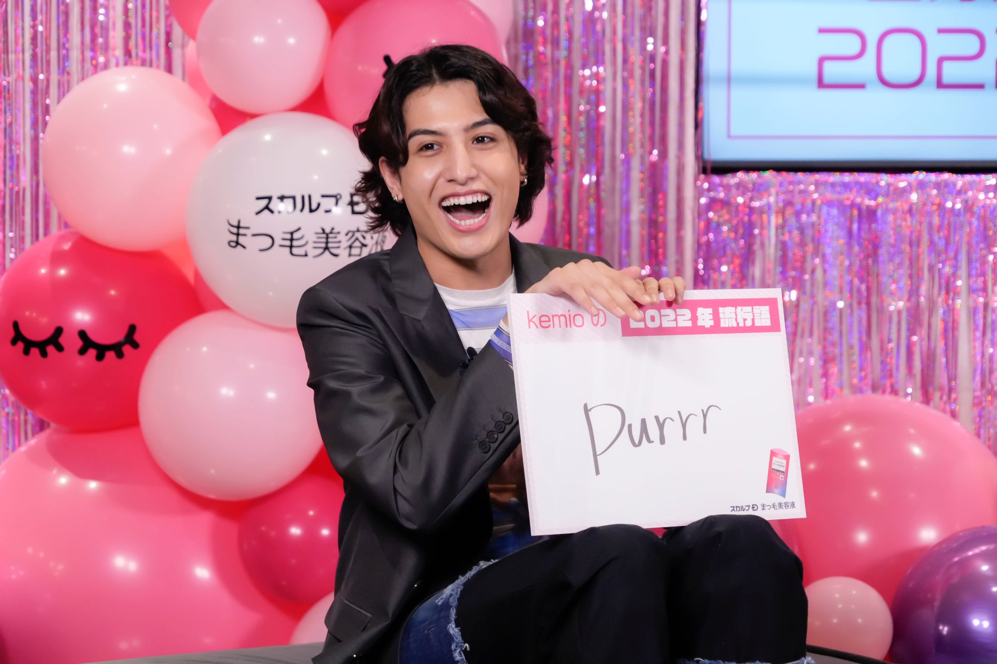 渡辺直美さんの2022年の流行語は「ハラヘッタ~汗」。食事をせずにミュージカルに挑戦した日々を思い出しながらお話されました。kemioさんの流行語は「Purrr」。英語で自分の気持ちを込めて話す時に末尾に付ける言葉で、「I LOVE YOU Purrr! まつ毛美容液 Purrr!」と、末尾につけて会話を盛り上げてくれました。
