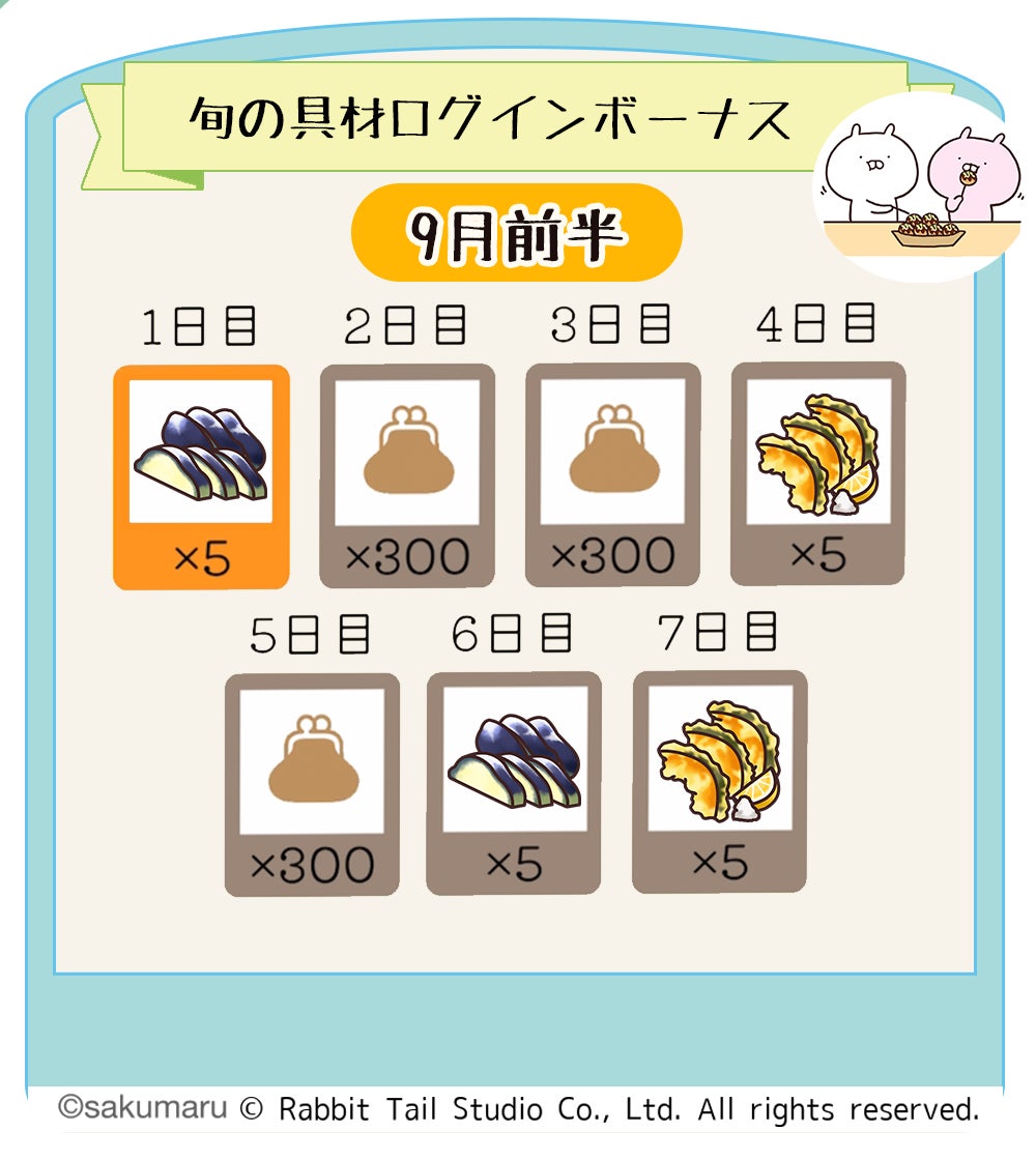 さまざまな新規ログインボーナスが開催!9月前半限定ステージで役立つ具材などもゲットできるので、もれなくログインしよう!