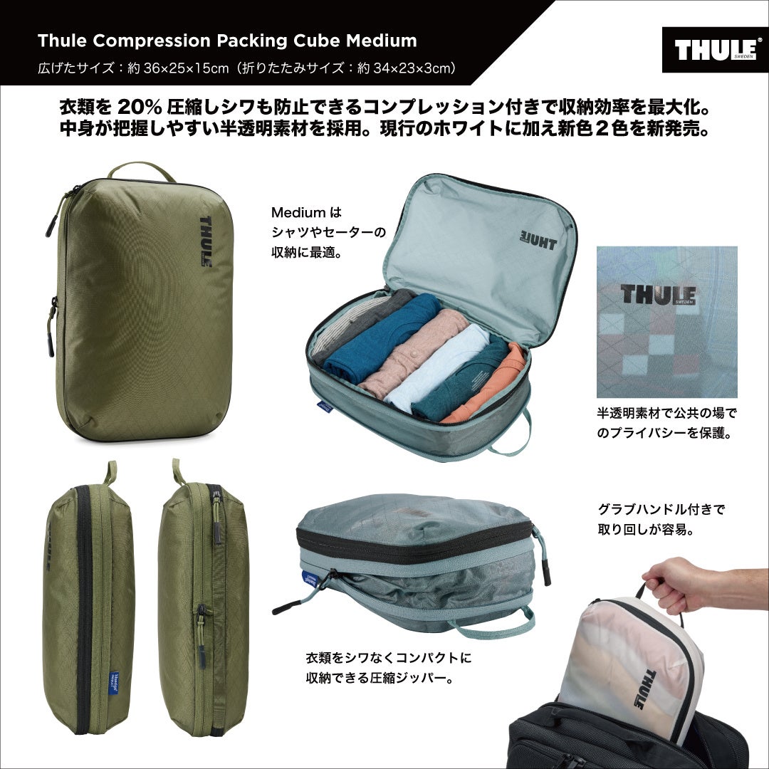 【Thule Compression Packing Cube Medium】は、10月に現行のホワイトに加えて新色2色が発売しました。