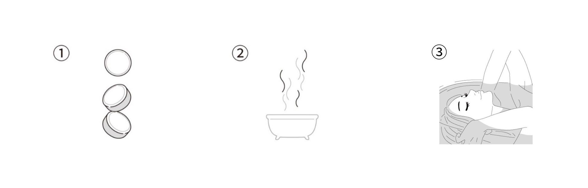 ③頭までどっぷり浸かって、頭皮を優しくもみほぐしてください。『BARTH中性重炭酸入浴料BEAUTY』が溶けたお湯は洗顔にもお使いいただけます。