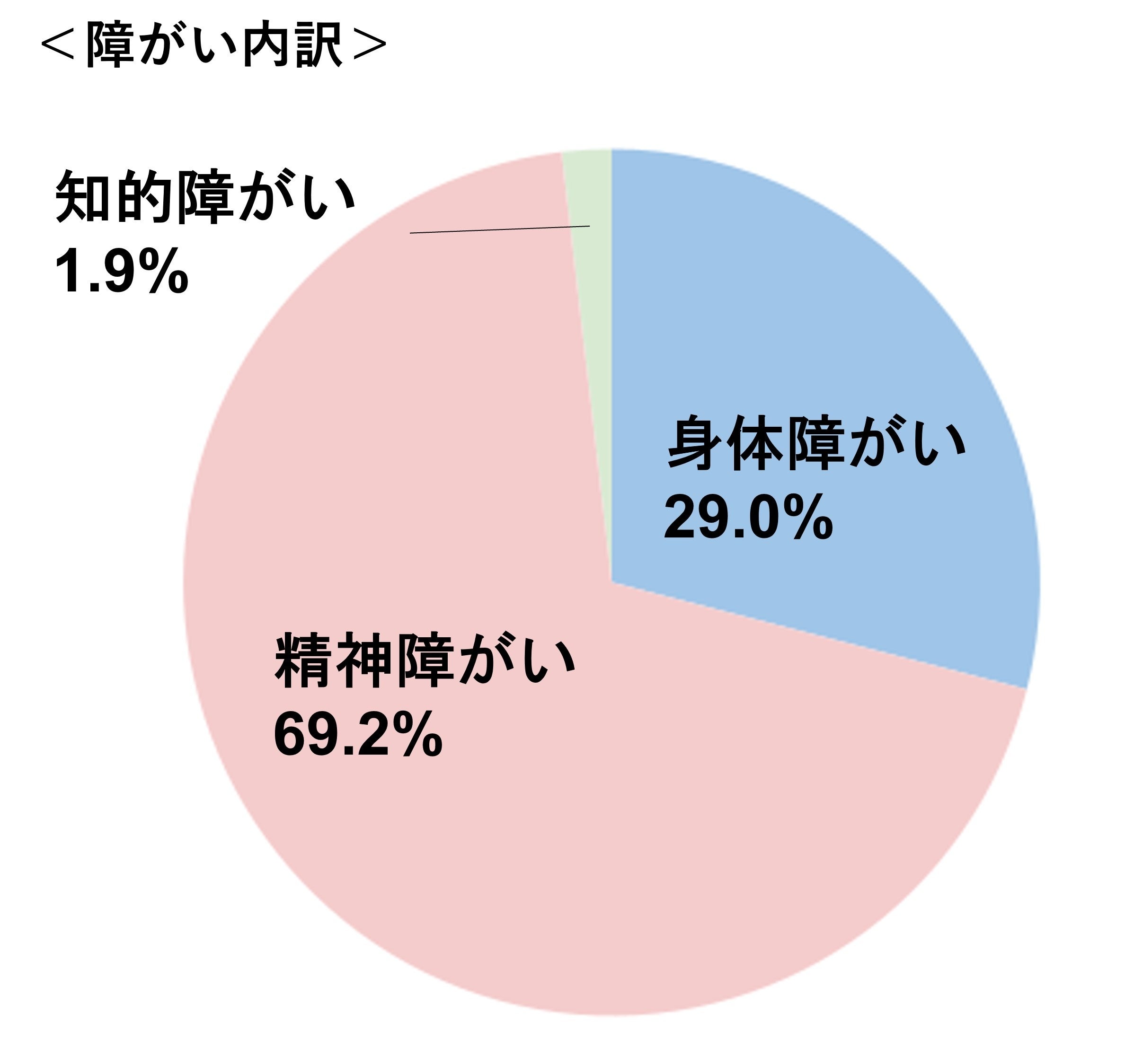 2018年4月1日から障がい者雇用義務の対象として加わった精神障がい者に関しても積極的に採用しており、全体に占める比率としても69.2%を占めております。