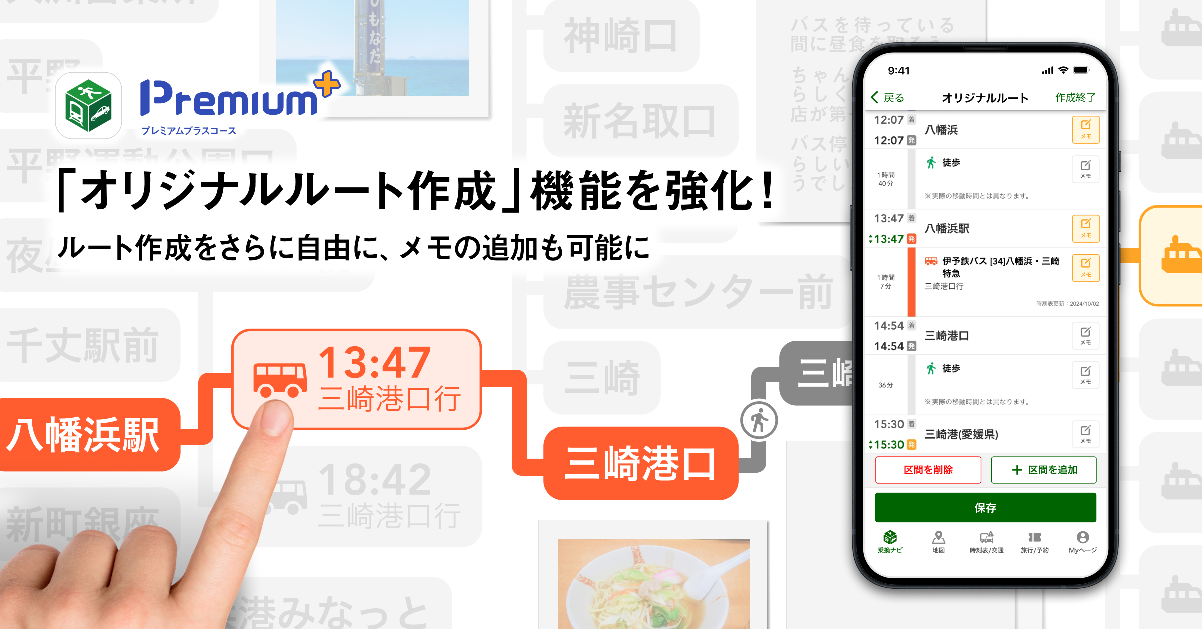 『NAVITIME』「プレミアムプラス」コース、自分好みのルート作成が可能な「オリジナルルート作成」機能を強化!