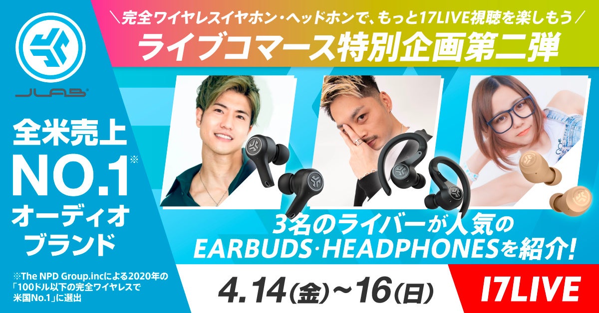 「17LIVE」で活躍する3名の音楽ライバーが、米国シェア No.1ワイヤレスイヤホン「JLab」の5商品をライブコマースで紹介
