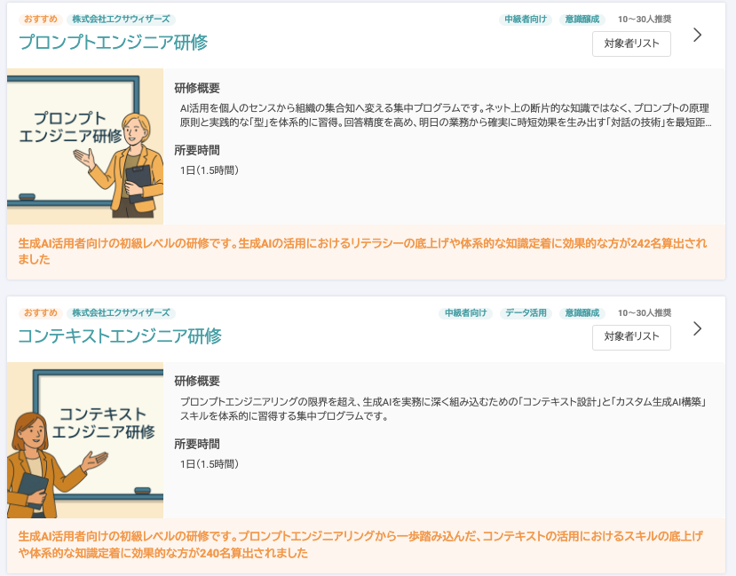ハンズオン研修のレコメンド機能も追加し、AX人材の育成から実務定着までを一気通貫で支援