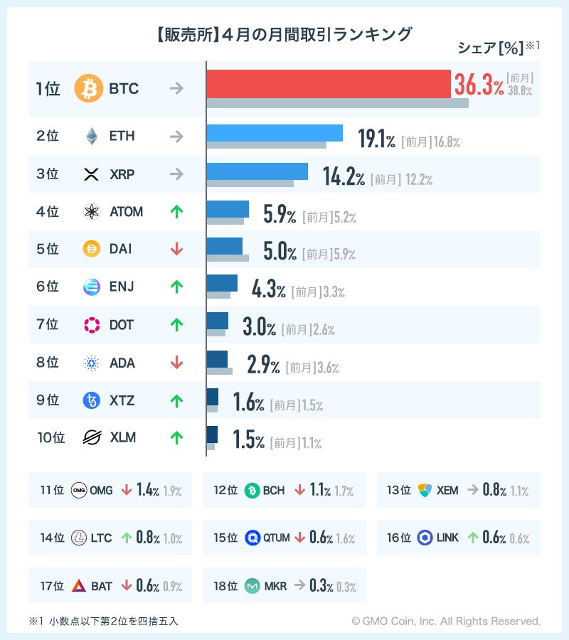 暗号資産取引のGMOコイン:2022年4月の暗号資産(仮想通貨)取引ランキングをご紹介