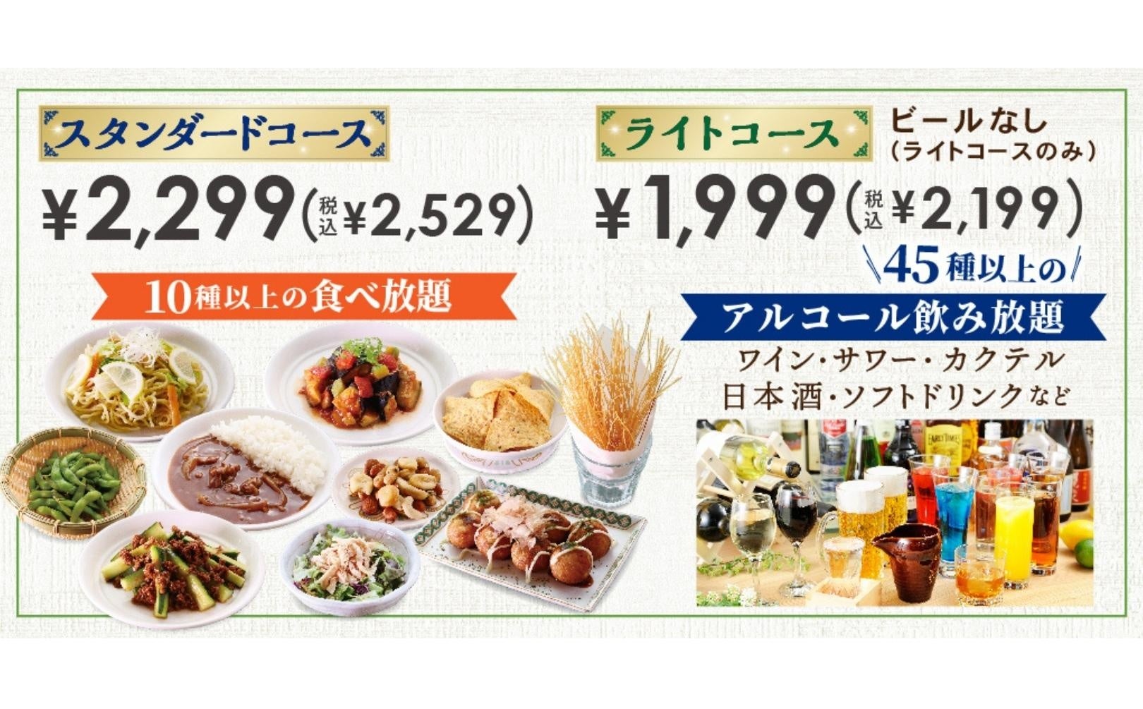 この度、ディナータイム限定、選べるコースでとってもお得な『食べ飲み放題プラン』が登場いたしました!