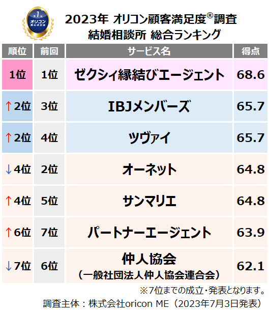 【ゼクシィ縁結びエージェント】が6年連続総合1位 評価項目・部門のすべてで5年連続1位に