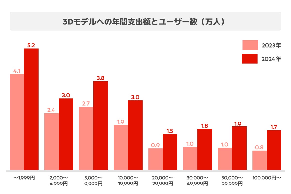 2023年と比べると、2024年はどの支出額帯でもユーザー数が大きく伸びています。ライトに楽しむ層に限らず、ヘビーユーザー層も含め幅広い層で盛り上がっていると言えます。
