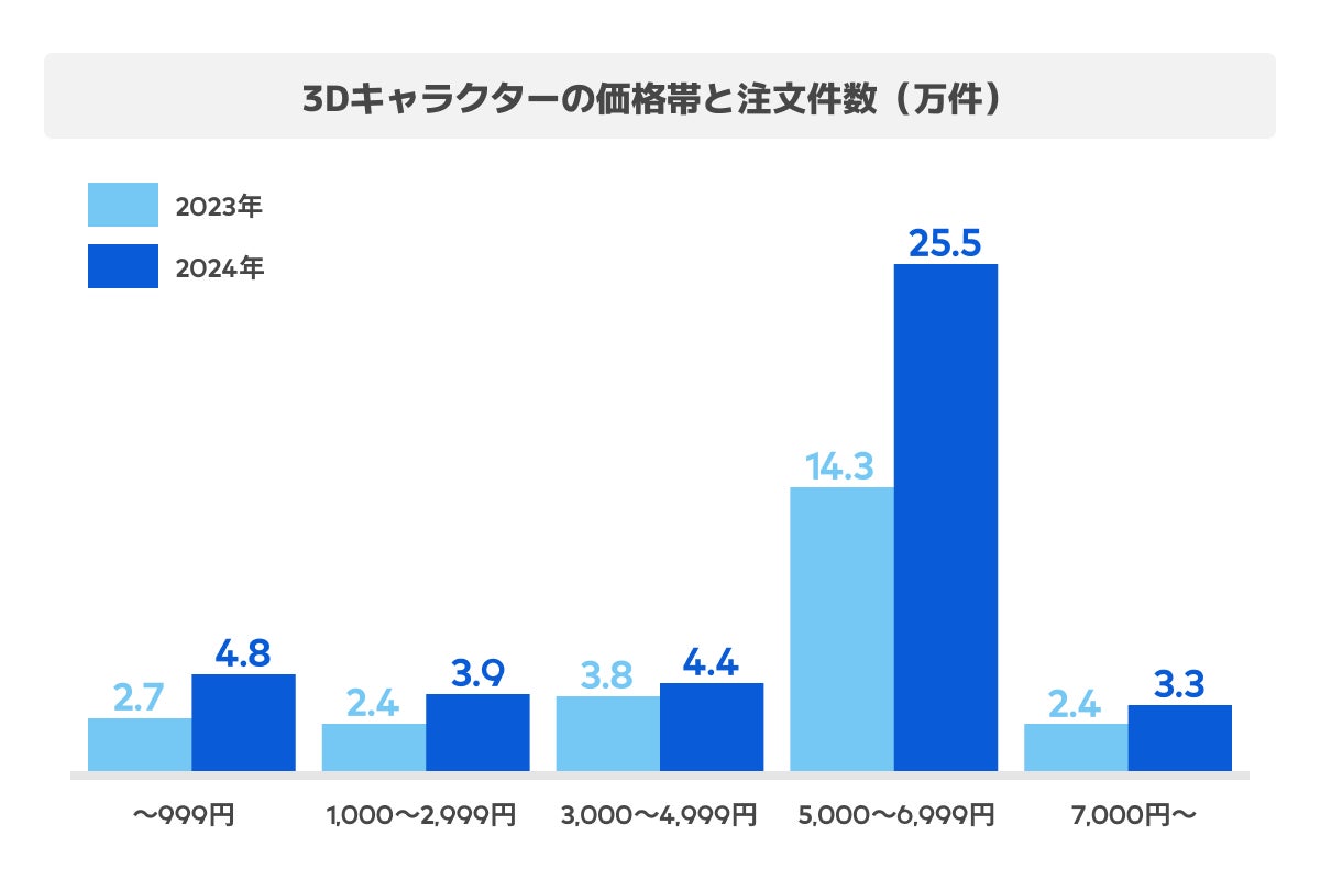 注文が伸びた3Dキャラクター(アバター)価格帯は5,000円〜6,999円