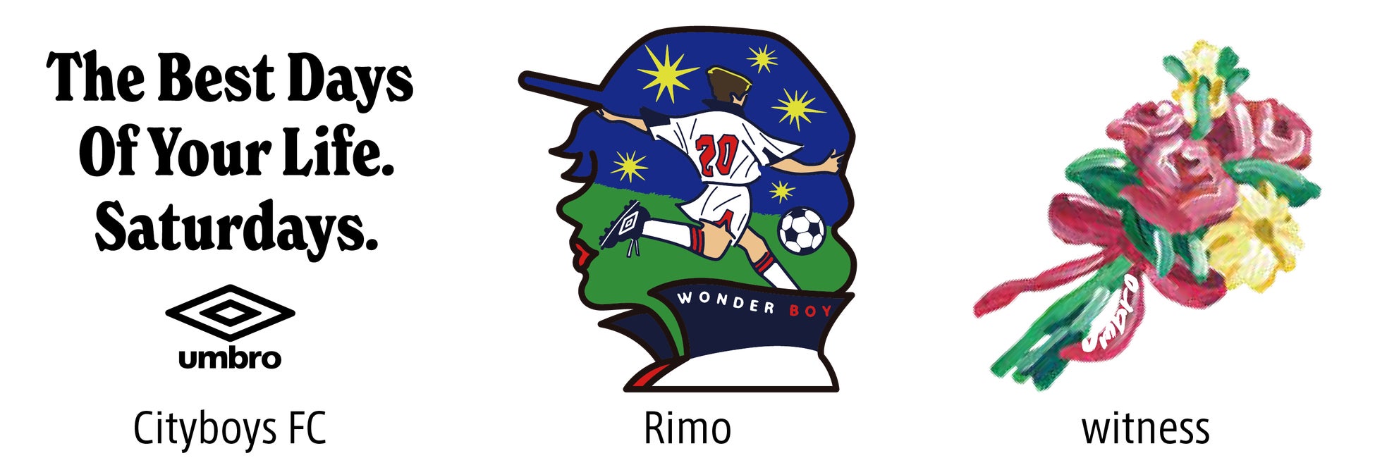 店内で『アンブロ』対象商品を購入された方に、3名のデザイナーによる今回のイベントでしか手に入らない書き下ろしのイラストを、ウェアとシューズにプリント(※シューズはステッカー貼付)できるカスタマイズサービスを実施します。プリントやステッカーのデザインは、フットボールカルチャーを起点に活動する「Cityboys FC」、幅広い分野で活躍するグラフィックアーティスト「Rimo」、フラワーモチーフを手がける「witness」のイベント限定書き下ろしです。対象商品にはジュニアサイズも含まれるので、子どもが自分でデザインしたお気に入りのサッカーウェアや家族や仲間とのお揃い柄など多様なカスタマイズが楽しめます。