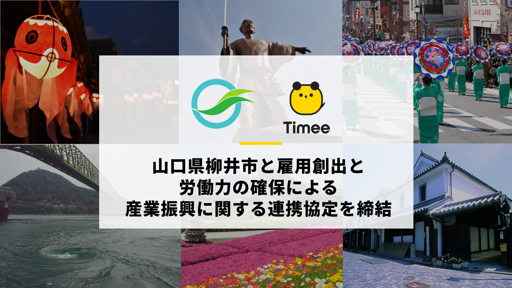 スキマバイトサービス「タイミー」を提供する株式会社タイミー(所在地:東京都港区、代表取締役:小川 嶺)は、山口県柳井市(市長:井原 健太郎)と連携協定を締結したことをお知らせします。山口県内の自治体との連携は、今回が初となります。