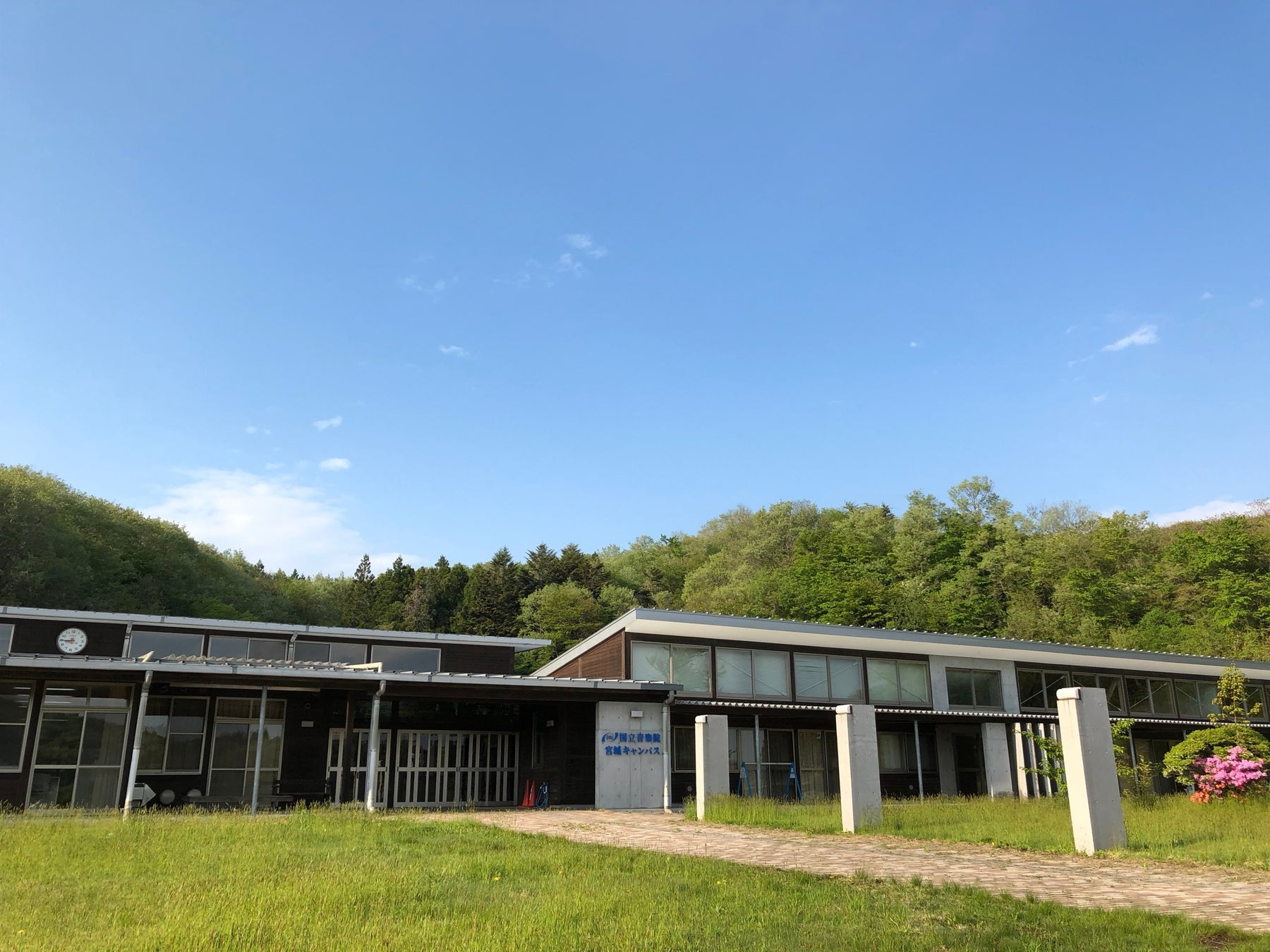 宮城県北の田園地帯に位置し、自然豊かな山間に囲まれた校舎にはたくさんの窓があり晴れた日には木目調の床に自然光が降り注ぎ、校舎の中でも常に青空が目に入る、開かれた空間があります。