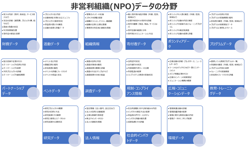 これらのデータは、非営利組織がその活動の透明性を確保し、効果的に社会課題に取り組むための基盤となります。