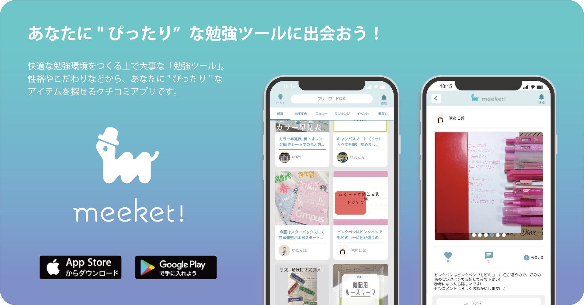 コクヨ株式会社(本社:大阪市/社長:黒田 英邦)は、文具を含む勉強ツールに特化したクチコミアプリ「meeket!」(ミーケット)を、6月1日(水)にリリースいたしました。