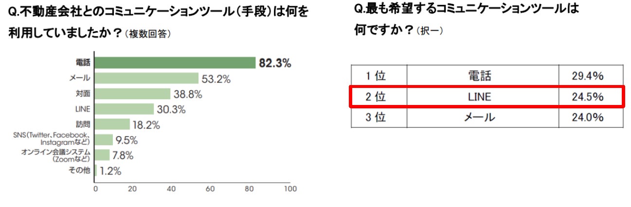 ~不動産会社とのコミュニケーションで最も希望するツール 2位「LINE」~