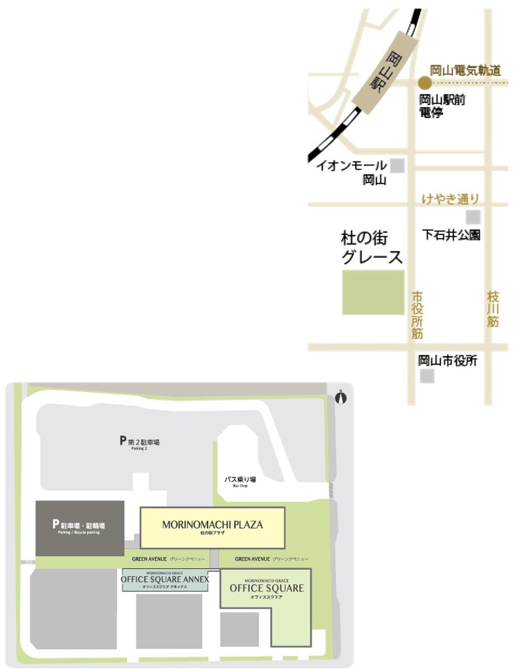 所在地:岡山県岡山市北区下石井二丁目10番8号 杜の街グレース 杜の街プラザ 3階・4階