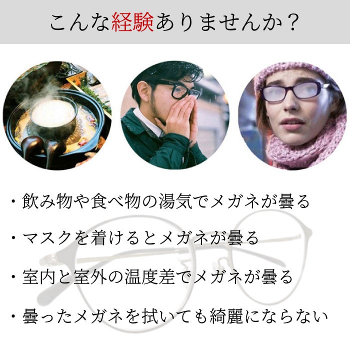 マスクの着用時におけるメガネの曇りを防ぎます。
