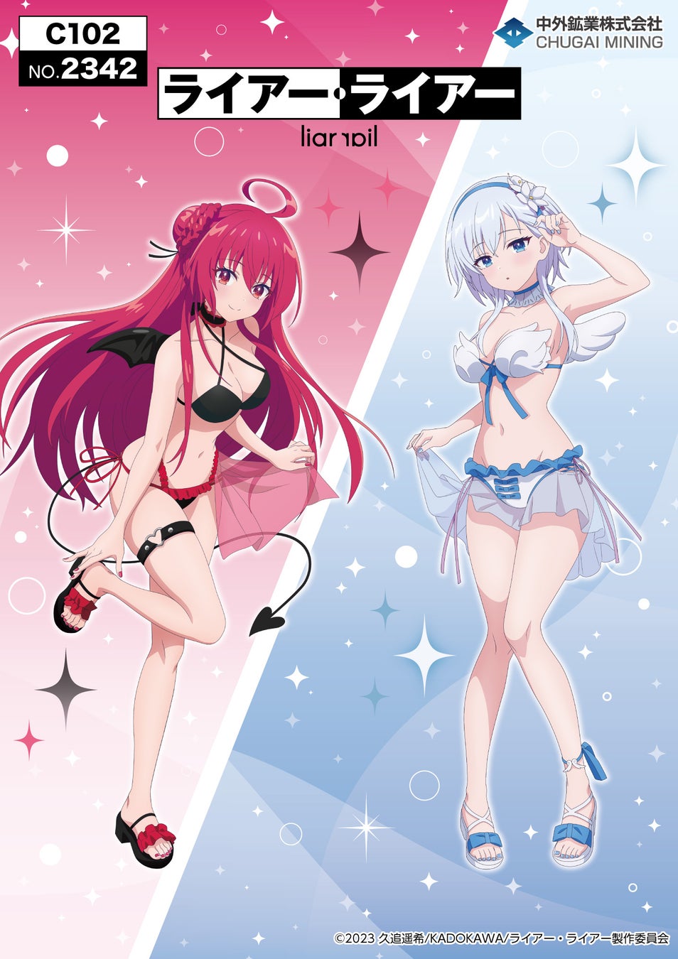TVアニメ『ライアー・ライアー』の新作グッズが「コミックマーケット102」で登場!天使と悪魔モチーフの水着姿がキュートな描き下ろしイラストを使用したアイテムが中外鉱業ブース[2342]にて販売決定!