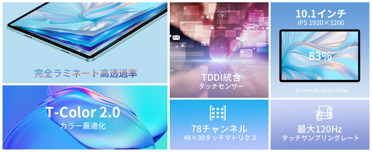 10.1インチの「M50 Pro」は、革新的なTDDI統合タッチ技術のパワーを採用し、48x30マトリクスタッチ カバレッジと120Hzのタッチ サンプリング レートによる比類のない密度を提供します。ディスプレイ対ボディ比率が 83% で、解像度は1920×1200のFHDです。T-Colour 2.0カラー最適化技術と組み合わせることで、ブルーライト放射を抑えながら、画面の色をより鮮やかにし、細部をより豊かにします。