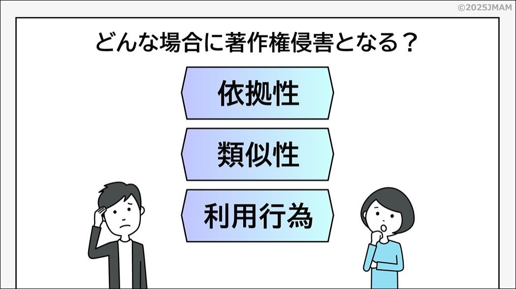 株式会社日本能率協会マネジメントセンター(代表取締役社長:張 士洛、東京都中央区、以下JMAM[ジェイマム])が展開する企業・個人向けの教育・研修メニューを提供する人材育成支援事業部は、オンラインで学べる法人向け教育ツール「eラーニングライブラリ®(※1)」の新コースとして、『そのうっかりはリスキーです!ビジネスで必要な著作権を理解する』を、2025年10月より開講しました。