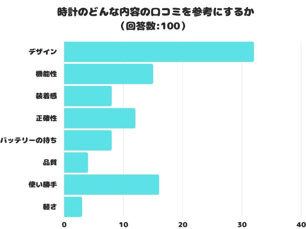 時計のどんな内容の口コミを参考にするかをアンケートにて調査したところ、1位は「デザイン」 でした。