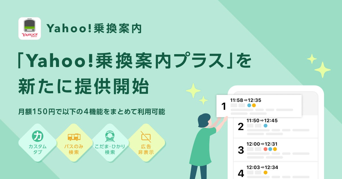 【Yahoo!乗換案内】自分に合ったより快適なルートが見つけやすくなる4つの新機能が利用できる「Yahoo!乗換案内プラス」を提供開始