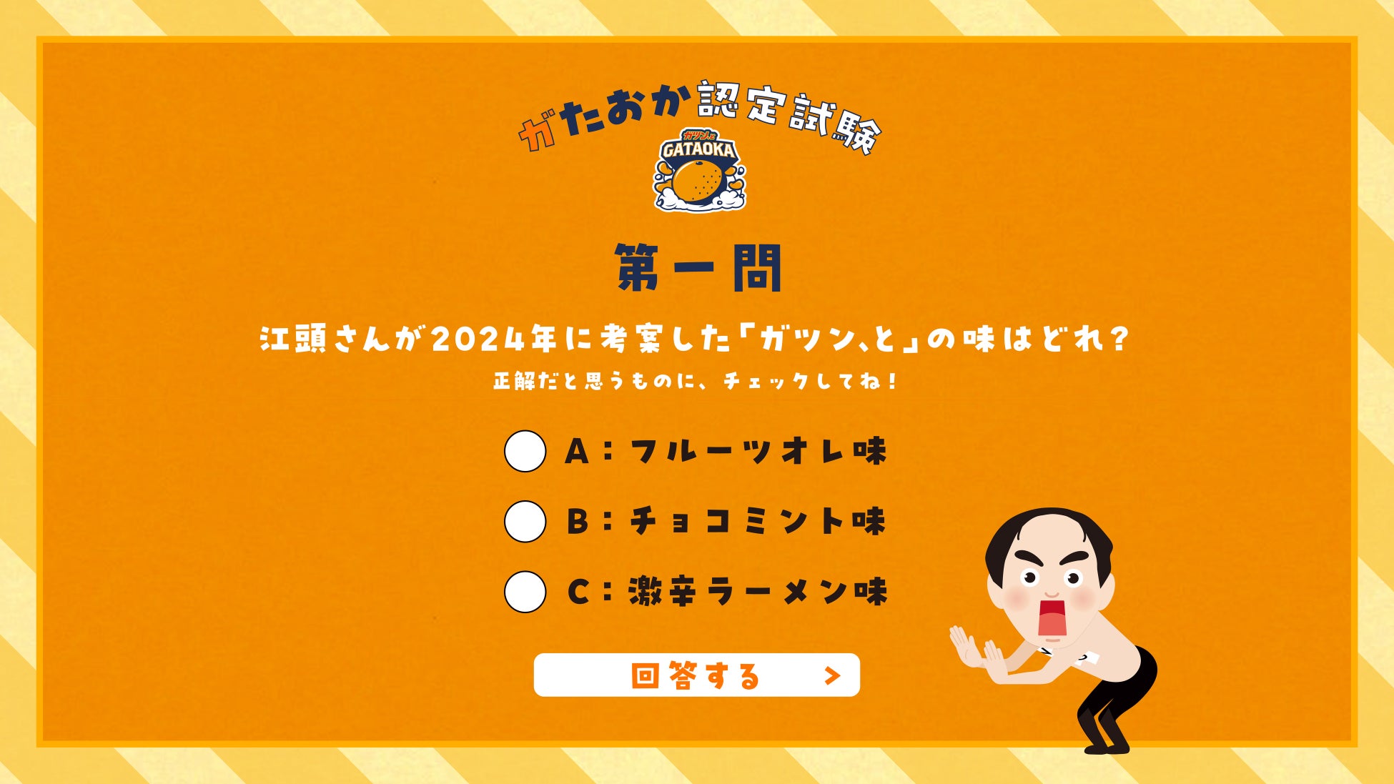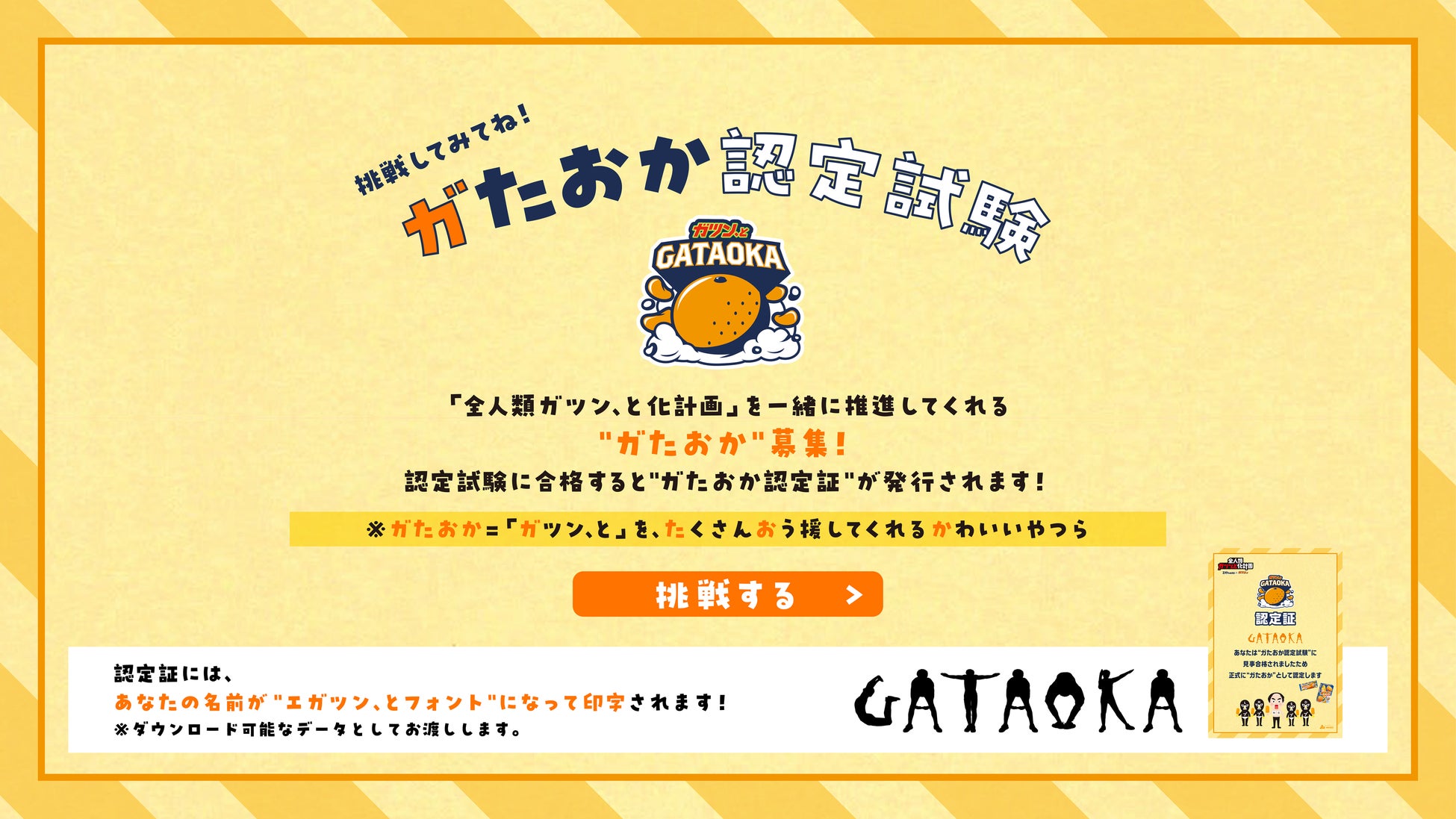 「全人類ガツン、と化計画」を一緒に推進してくださる“ガたおか”を募集するために、ブランドサイトでは、3月3日(月)より「ガたおか認定試験」を開催いたします。