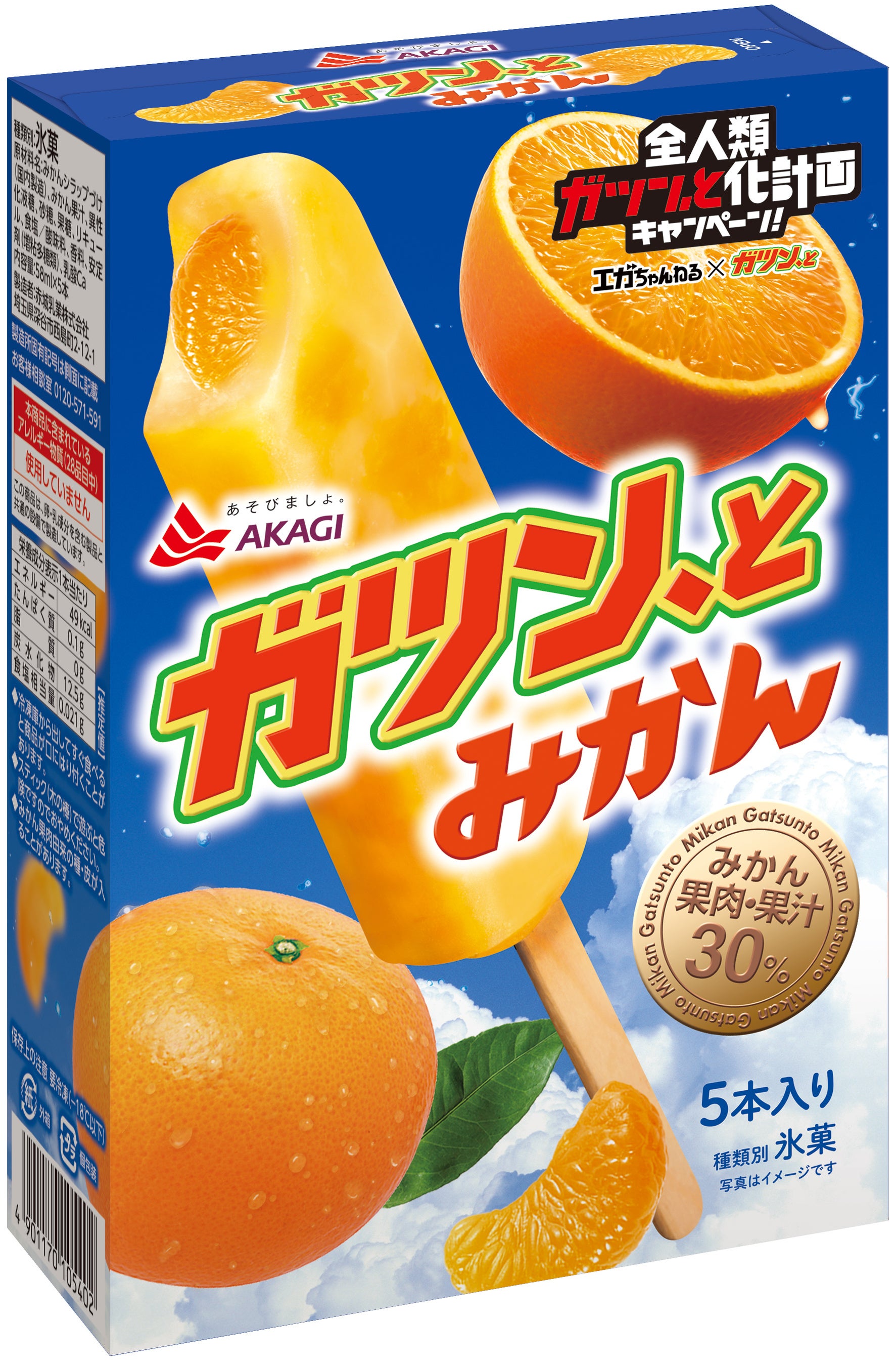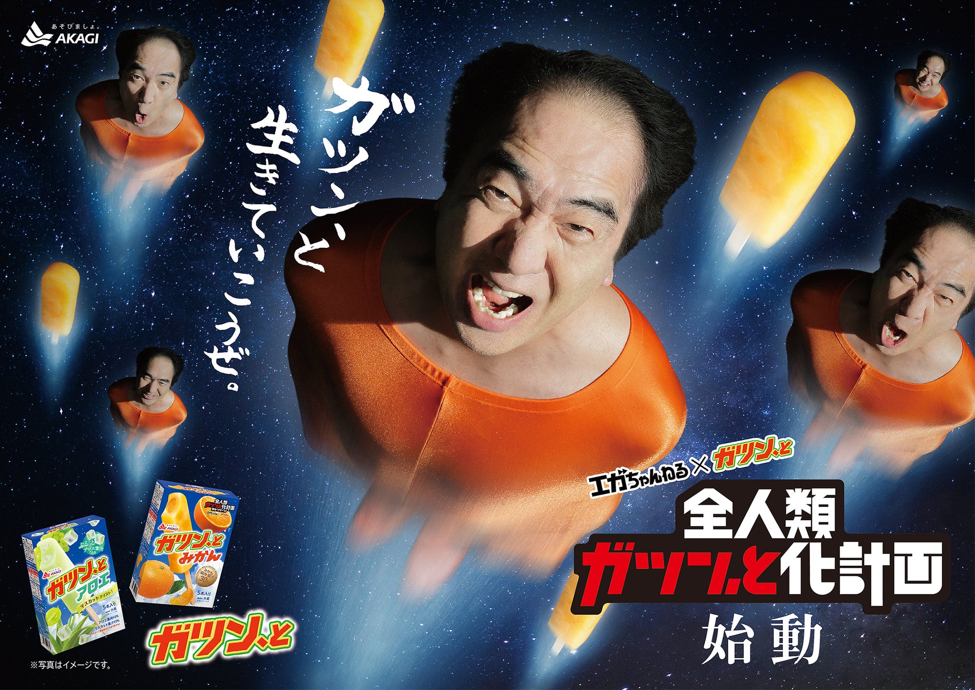 赤城乳業株式会社(本社:埼玉県深谷市、社長:井上創太)は、「ガツン、とシリーズ」で、江頭2:50さんと4年目の広告契約の更新を行い、3月3日(月)より新WEBCMを公開します。4年目のコラボとなる今回は、小さなことで悩んでいる人、自分に自信を持てない人、一歩を踏み出せない人、そんな人たちを笑顔にしたいという思いから、『全人類ガツン、と化計画』を始動いたします。新WEBCMでは、全人類に「ガツン、と」を届けるために、地球に襲来する江頭2:50さんを描きます。「ガツン、とみかん」は、みかんのアイスキャンディーに、みかん果肉をガツン、と詰め込んだ”瞬間気分爽快っ!”なアイスです。
