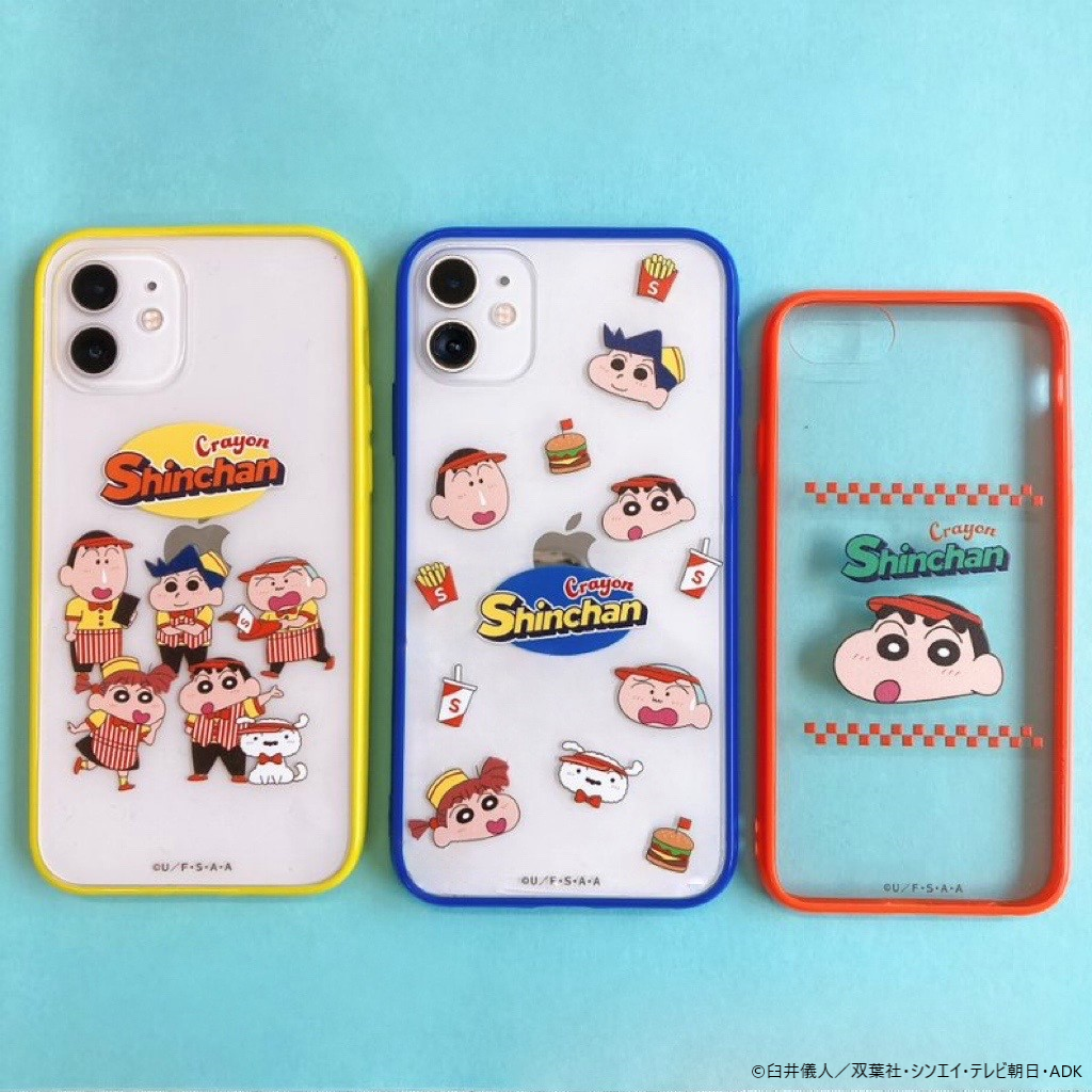 サイズ毎に全てデザインが異なるiPhoneケースはポテトをつまみ食いする姿やたくさん重ねたバーガーを両手いっぱいにして運ぶ姿など、しんちゃんのマイペースな性格を表現しています。