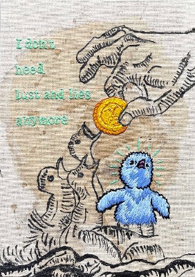 モノクロの躍動的で混沌とした添田陽のグルームな作品と、カラフルな動物達が生きる高木耕一郎の不思議な刺繍作品のコントラストが堪能できる二人展『Abyss』が「BOOKMARC」にて開催!