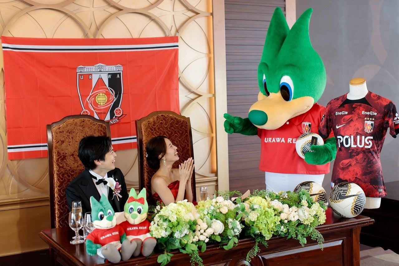 浦和レッドダイヤモンズの選手やチームキャラクター レディアによるお祝いや、スタジアムでもお馴染みのアナウンサーによるMCなど、一生の思い出に残る夢のようなウェディングプラン11月22日よりご予約開始