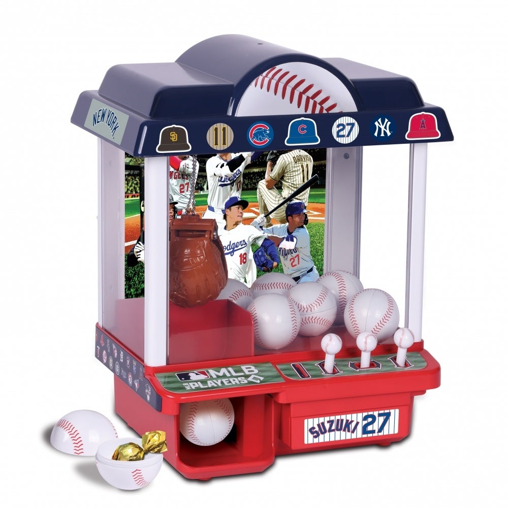クレーンはグローブ、カプセルはボールの形をしているクレーンゲーム。付属のコインを入れるとMLBでおなじみの曲が聞こえ、曲が流れている時間内にクレーンを操作してカプセルの獲得を目指します。