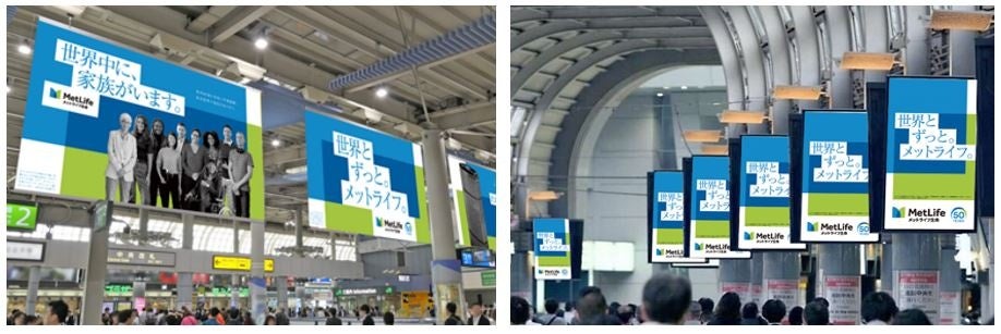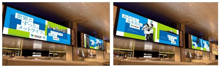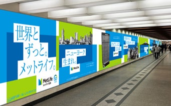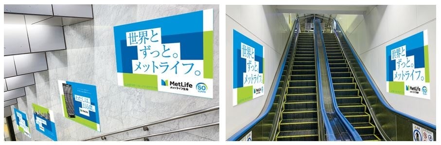 「世界とずっと。メットライフ。」をキーメッセージに掲げ、米国で 155 周年、日本で 50 周年を迎えたグ ローバル企業として、長い歴史と世界観をビジュアルでお伝えすることを企図しています。広告には当 社のブランドカラーであるブルー、ダークブルー、グリーンの 3 色を大きくあしらっています。屋外広告の クリエイティブは、株式会社 POOL の丹野英之氏、是永聡氏に依頼し、当社が世界中のネットワークを 活かした独自の強みを発揮し、今後も成長し続けていく決意を表現することを目指しました。お客さまを はじめとするステークホルダーの皆さまに、メットライフおよびメットライフ生命がお客さまに寄り添ってき た歴史や実績、これからも継続するお約束を、シンプルにお伝えするデザインとなっています。