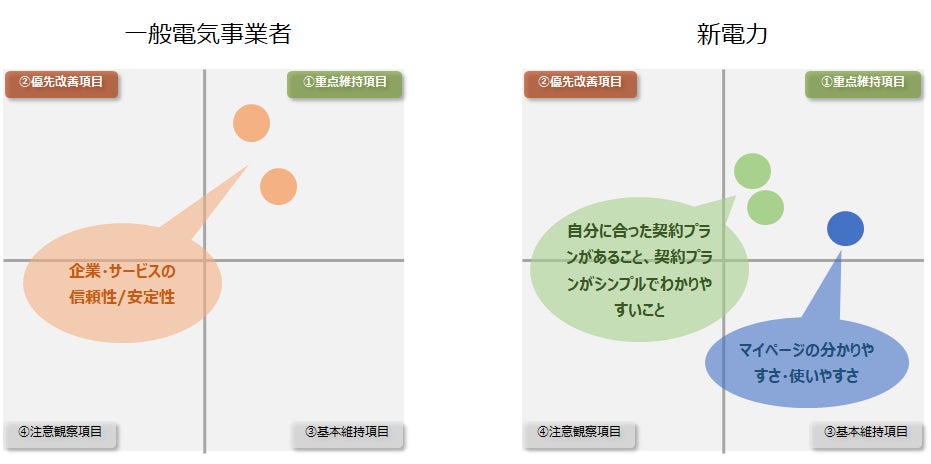 また新電力においては、「企業の信頼性/ブランドイメージ」や「サービスの信頼性/安定性」に加え、「自分にあった契約プランがあること」や「契約プランがシンプルで分かりやすいこと」といった契約プランに関する項目や「マイページなどの契約者専用ページの分かりやすさ・使いやすさ」がロイヤルティ醸成の要因となりました。