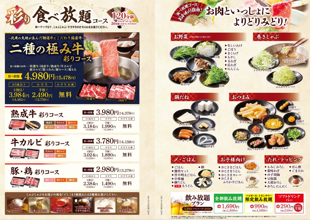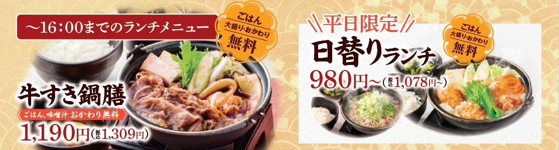 グランドオープン特別メニューとして、食べ放題は5,980円、定食は2,780円にてご用意しております。ぜひこの機会に、黒毛和牛リブロースの格別な味わいを、どん亭ならではの一鍋でご堪能ください。