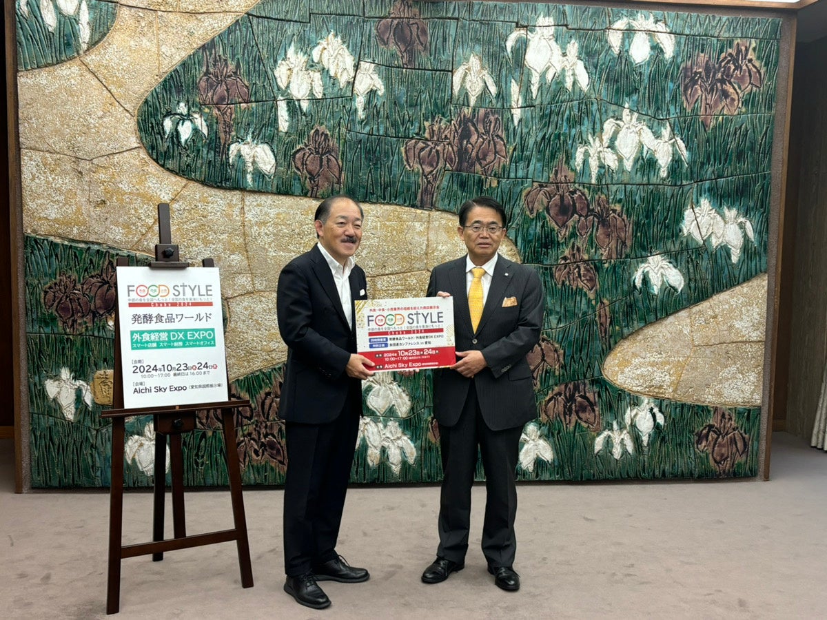 10月4日(金)、FOOD STYLE Chubu 実行委員会(所在:東京都港区、運営:株式会社イノベント) 実行委員長 堀 正人(※1)が愛知県の大村 秀章 知事を表敬訪問し、10月23日(水)、24日(木)に開催される「FOOD STYLE Chubu 2024」の開催に向けて意気込みをお伝えいたしました。