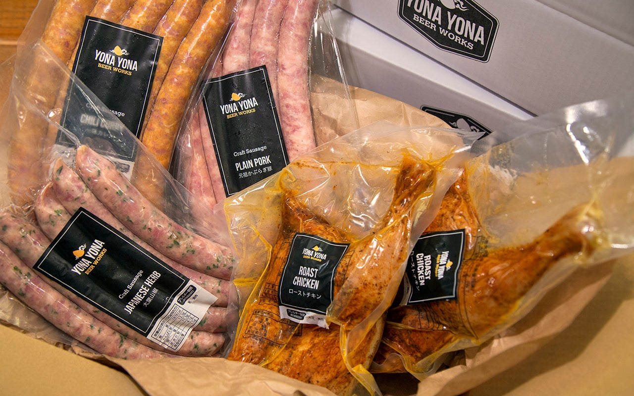 2022年が皆様にとってより良い1年になるよう祈願して、YONA YONA BEER WORKSの公式オンラインショップより、人気商品の詰め合わせをお年玉価格で期間限定販売します。大人気の「クラフトソーセージ」は、かぶらぎ豚、パクチー&レモン、ほうれん草&レンコンの3種、そして看板メニューの「伊達鶏のローストチキン」2ピースのセットです。年始の食卓やオンライン飲み会などで、ぜひYONA YONA BEER WORKSをお楽しみください。