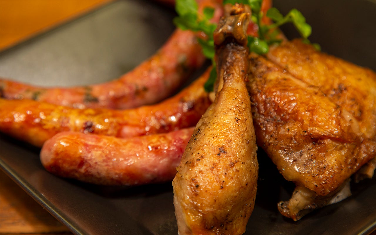【初売】伊達鶏のローストチキン、クラフトソーセージ3種詰合せ