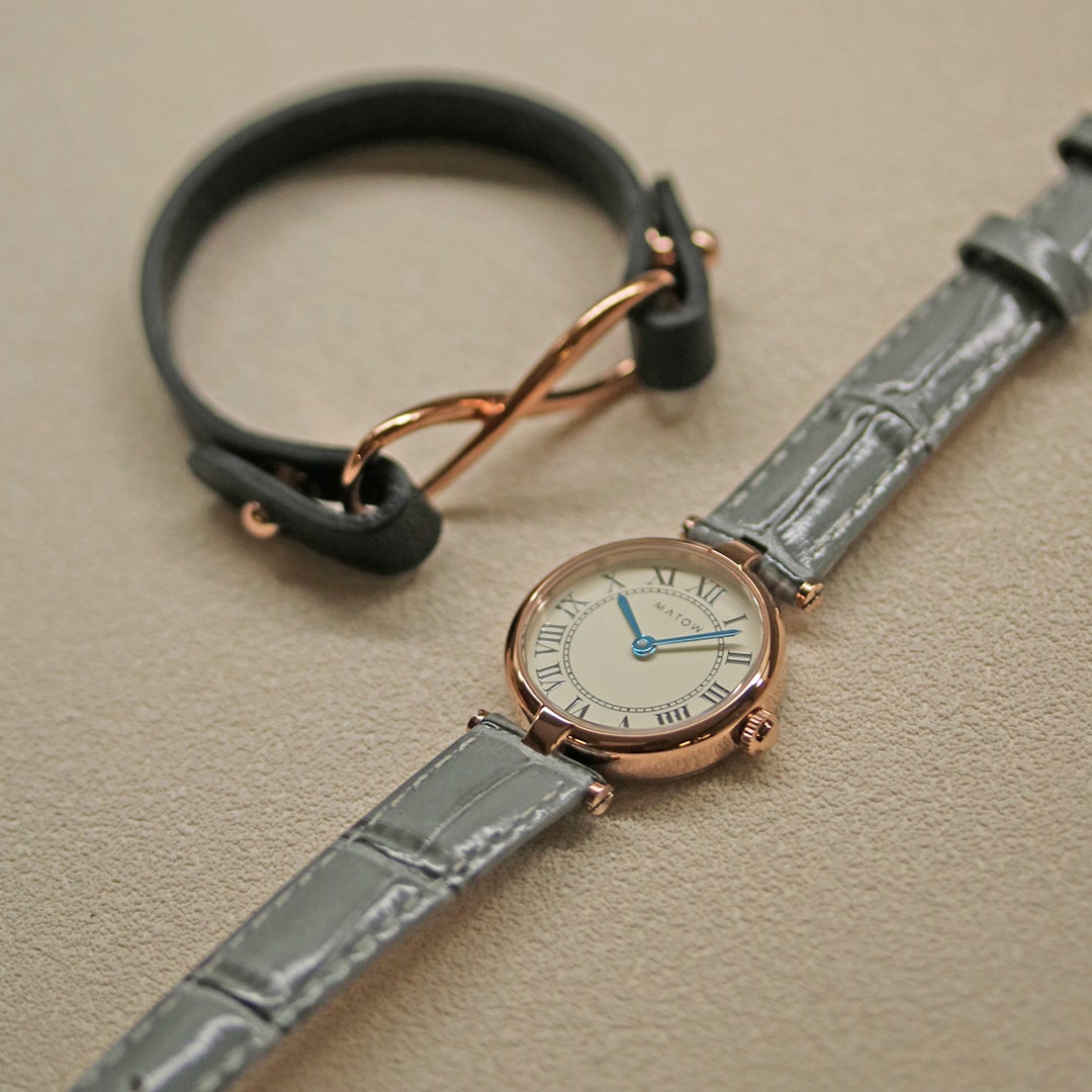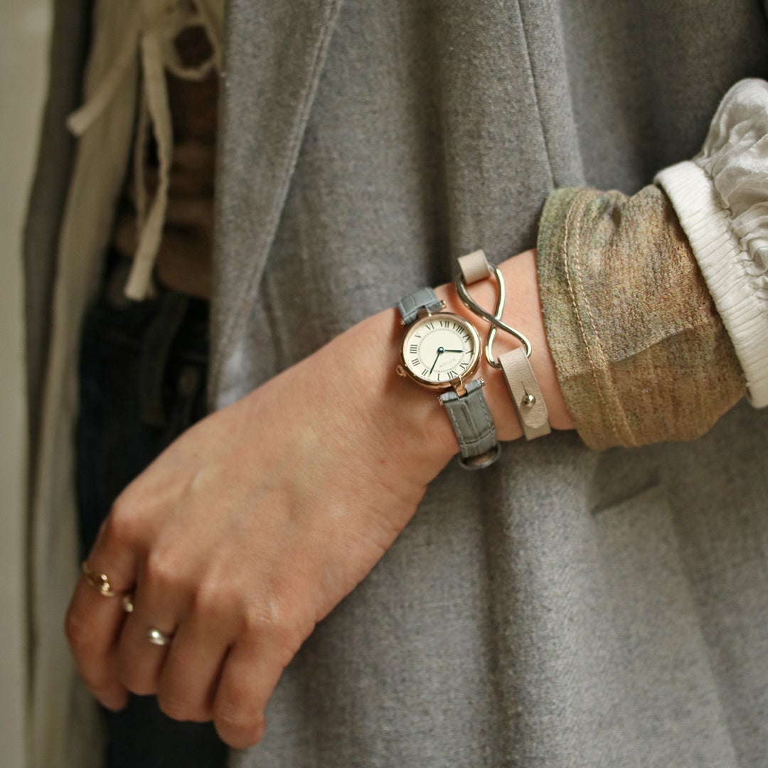 日々の装いに寄り添い、身に纏うことで自分らしさを引き出す、をテーマにした日本製のレディスウォッチ「MATOW(マトウ)」。人気シリーズに、オトナに似合う甘さをおさえたブルーグレーストラップの別注モデルが登場。クラシックな顔立ちが上品な雰囲気を醸し出します。シンプルなデザインなので、お手持ちのアクセサリーとも相性が良く、手元をお洒落にみせてくれます。