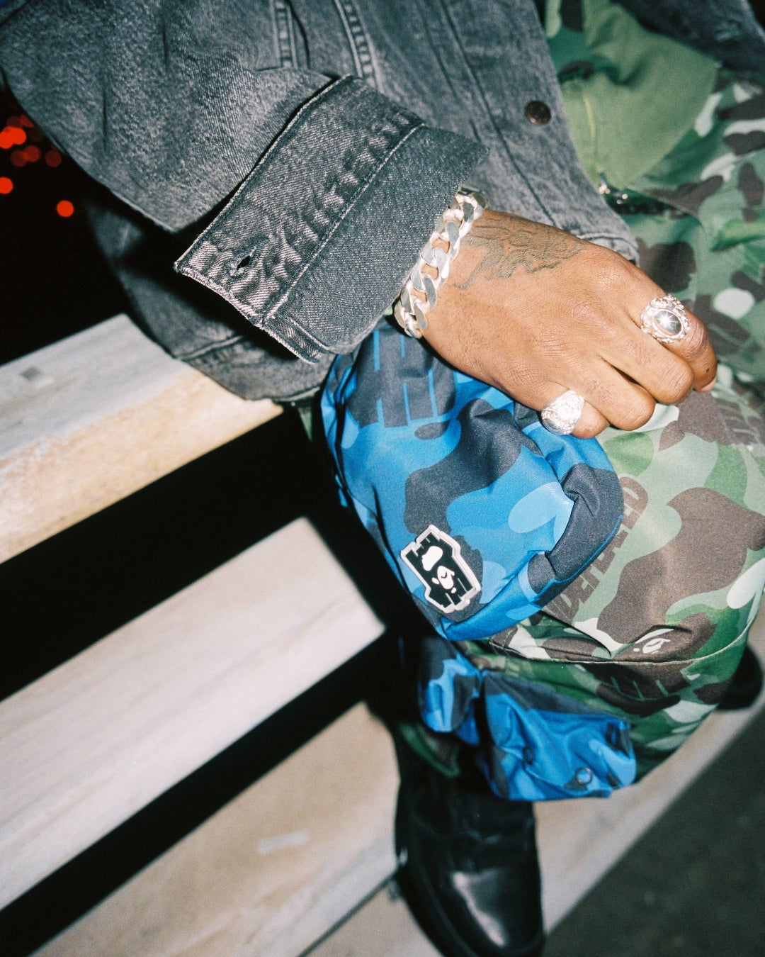 BAPE®︎のCOLOR CAMOには、UNDFTDのロゴとシグネチャーである5ストライクスがあしらわれ、今コレクションならではのスペシャルカモフラージュとして登場。飛行機のフライトチケットをモチーフにしたラベルも付属されるなど、ディテールにもこだわっています。