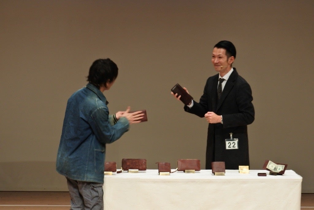 2024年1月26日(金)の全国大会には、総勢824名が出場の全国8地区の支部大会で優勝した27名の代表者が出場しました。ファッション・物販、食品・飲食・サービスの2部門に分かれ、それぞれが温かく個性あふれる接客を行い、ショップスタッフとお客様とのコミュニケーションから生まれるリアルショッピングの魅力を観客に披露しました。プレミアム・アウトレットからは、全国大会への切符を勝ち取った土岐プレミアム・アウトレットの遠藤さん、仙台泉プレミアム・アウトレット New Balanceの大友英明さんが出場し、両部門を通じて1名選出される大賞に、Ryuの遠藤公志郎さんが見事選出されました。大賞の遠藤さんには、その栄誉と共に、日本ショッピングセンター協会より賞金30万円と、経済産業省より経済産業大臣賞が贈られました。