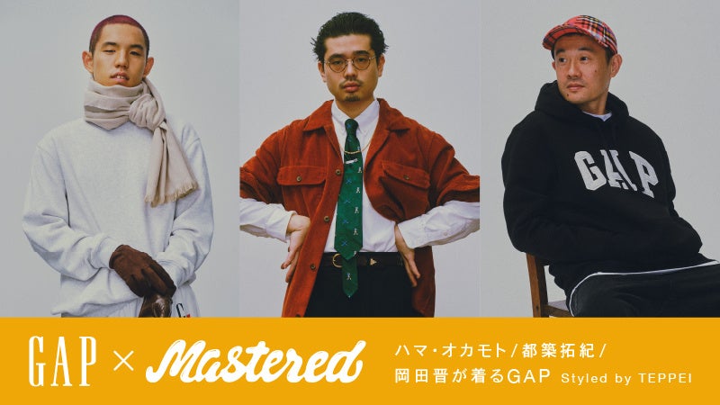 Gapは、メンズファッション&カルチャーを発信するWebマガジン「Mastered」とスタイリストTEPPEI氏とのコラボレーションにより、OKAMOTO'Sのハマ・オカモト、四千頭身の都築拓紀、プロスケートボーダーの岡田晋という世代の異なる3名をモデルに起用し、それぞれの個性に合わせてGapのHOLIDAYスタイルを提案する「僕らが好きな”Gap”のある大人たち」(https://mastered.jp/feature/gap-people-2022aw/ )を公開しています。